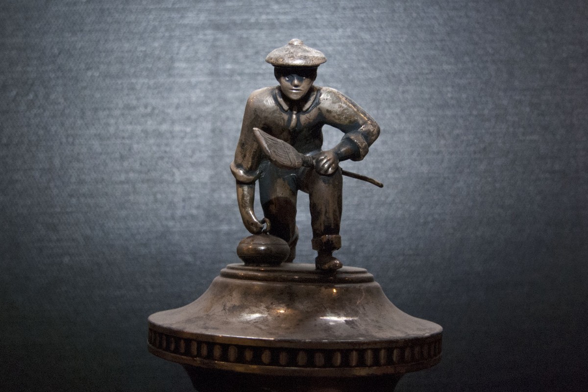 An old curling trophy in UM Archives& Special Collections