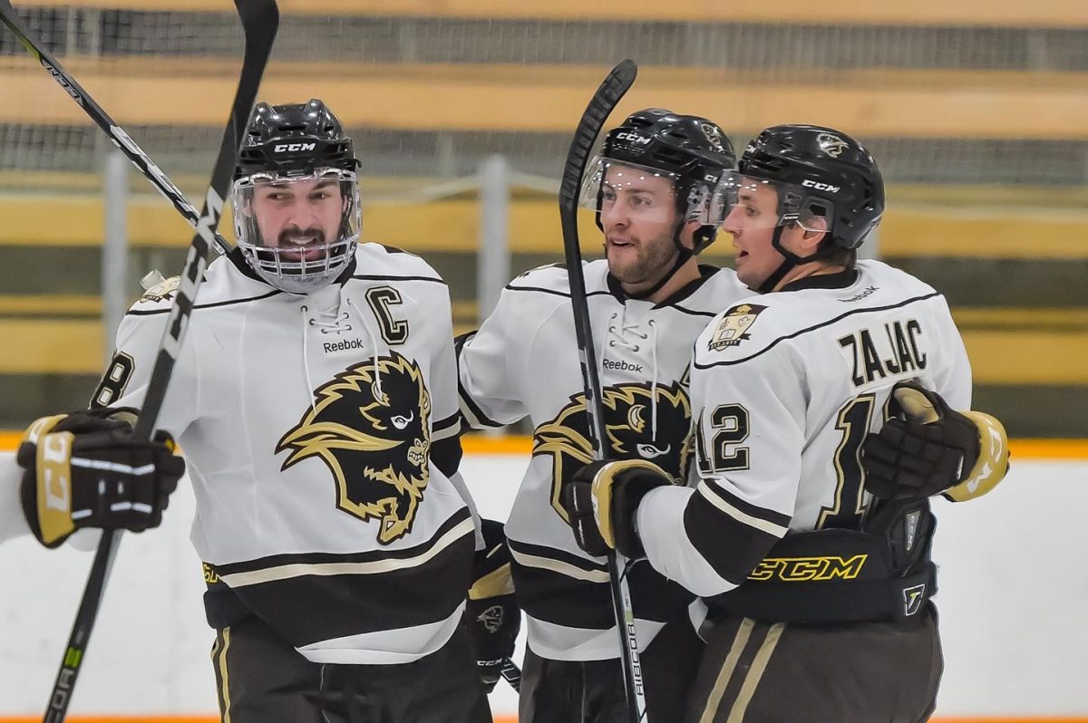 Stovin (left) wore the 'C' for two years as a Bison Men's Hockey student-athlete // Jeff & Tara Miller