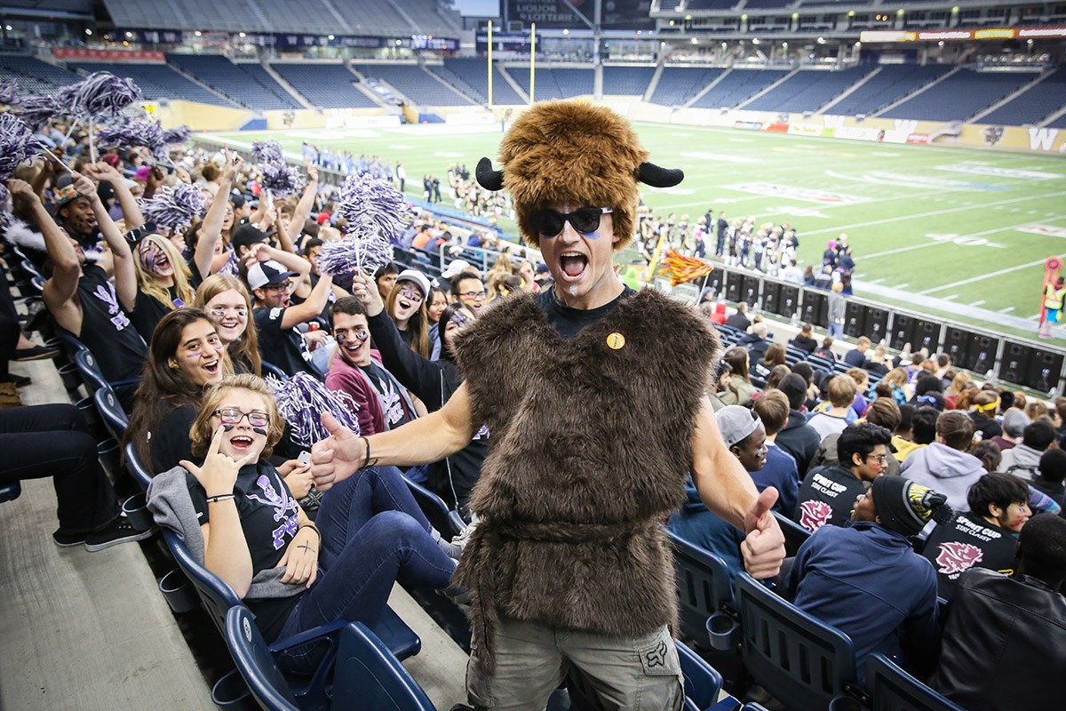 After the pep rally, everyone will head over to Investors Group Field as a massive Bison Herd, led by our very proud Bison spirit group, The Big Horns to support our football team. The Bison football team will face the University of Alberta Golden Bears at 7:00 p.m. Let’s get loud!