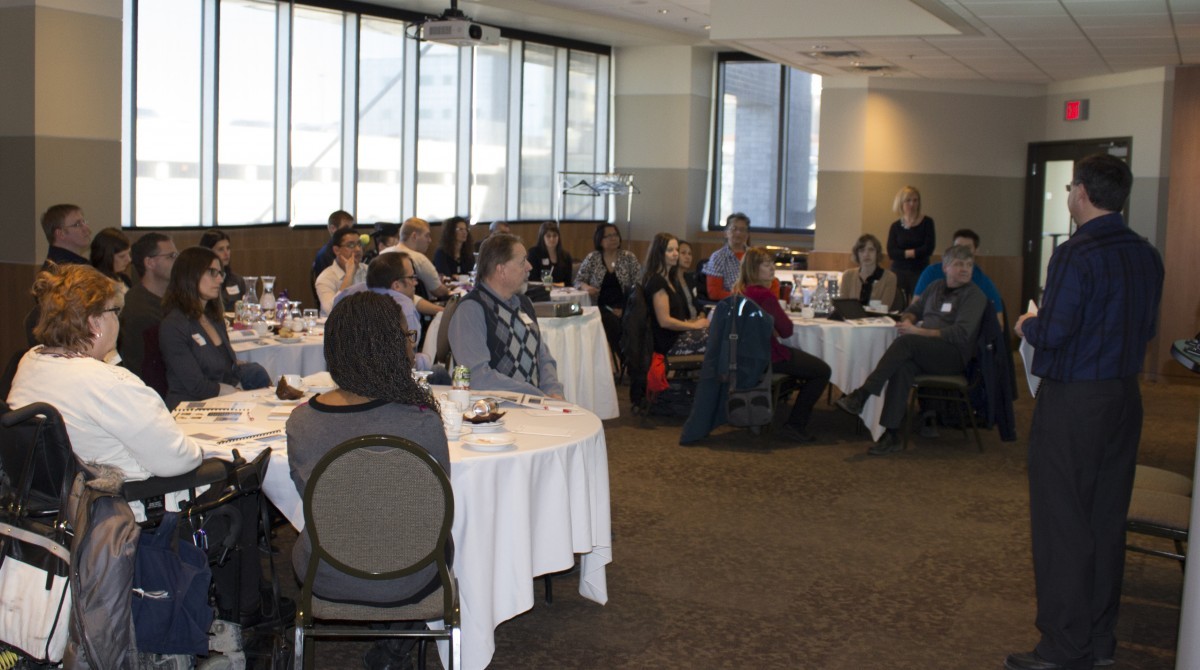 Gathering in the CanadInns at the Health Sciences Centre, and facilitated by Dr. Jacquie Ripat, associate professor of Occupational Therapy, the meeting brought together over 30 researchers, graduate students, service providers and people who use wheeled mobility devices.