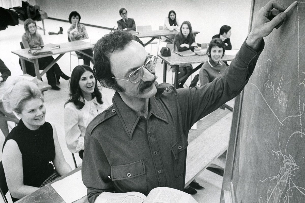 Psychology professor Manly Spigelman in the classroom circa 1971. // Image from UM Archives & Special Collections