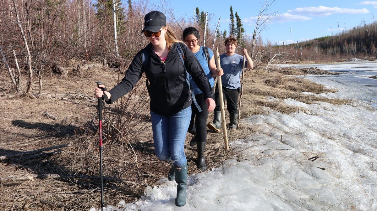 U of M students exploring the local environment during their stay in Leaf Rapids.