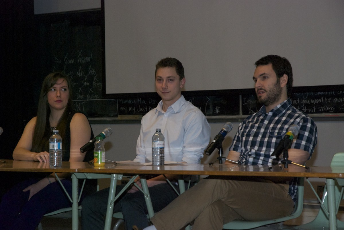 Participants in the new teachers panel at EdCon, from left, Rihana Robson, Christian Lacko and Alex Kozub, provide tips on making the most of teaching.