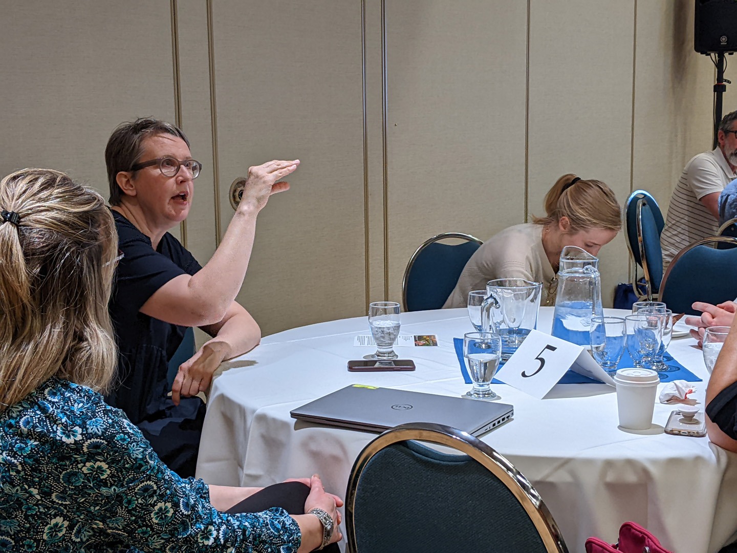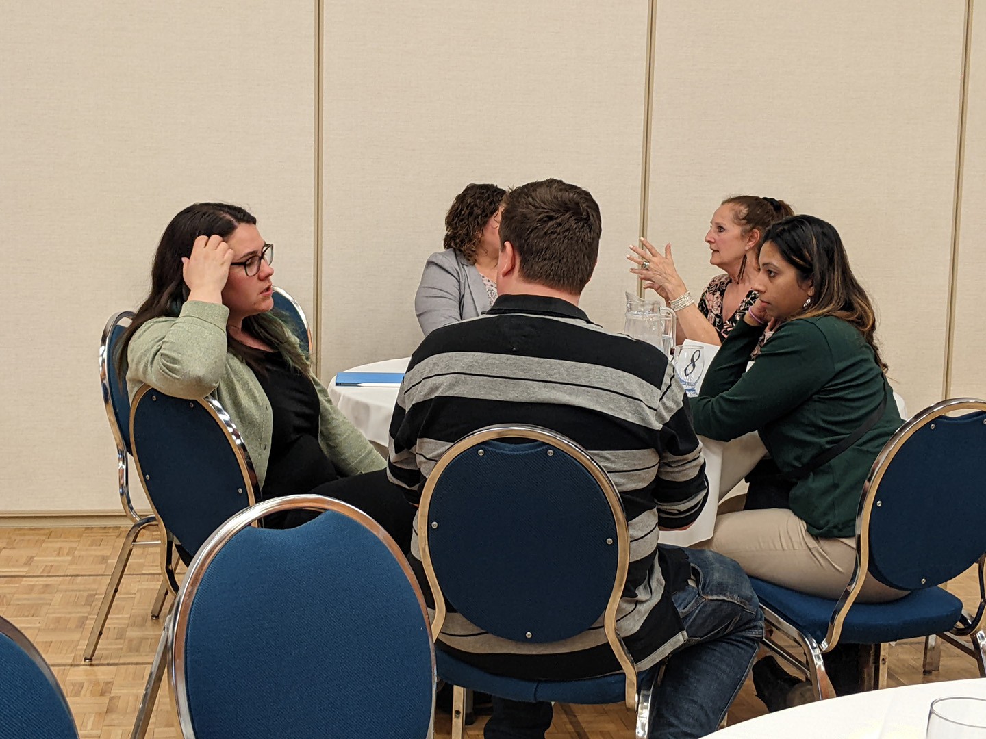 Three Teaching Café attendees having a discussion.